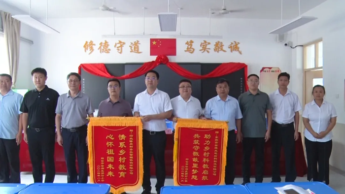 捐贈儀式后,郭村小學(xué)教師代表向安道教育贈送錦旗并合影留念。隨后,在各級領(lǐng)導(dǎo)的陪同下參觀學(xué)校改造情況。