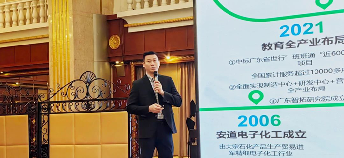 隨后,安道教育華南大區總監陳道育發表題為《聚力同行 渠道共贏》主題演講。他從宏觀角度由淺入深介紹安道教育的整體狀況。著重闡述了安道教育在遵循國家教育政策方向,如何更緊密地貼合市場需求,深度挖掘教育核心價值與產品創新動力。他表示:安道教育始終貫徹“軟硬結合”發展戰略,通過加大軟件研發力度,軟硬件雙輪驅動推動產業延伸與融合,實現資源整合與優勢互補。