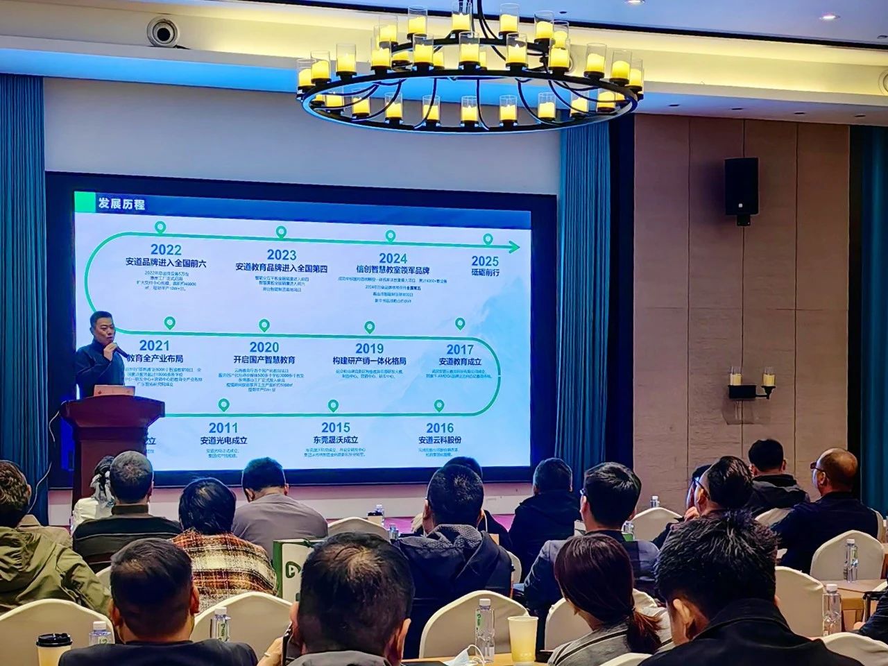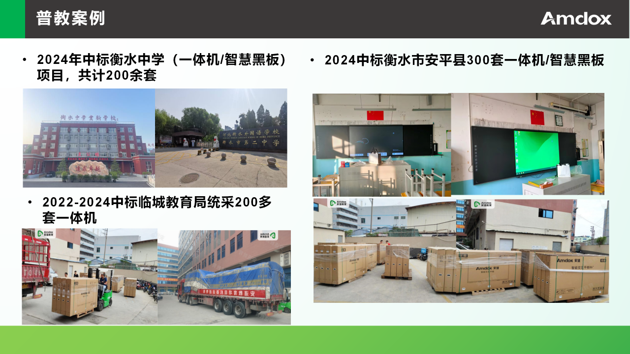 他表示,自河北辦事處成立以來,先后中標多個河北教學信息化項目,如:2024年中標衡水中學(一體機/智慧黑板)項目,共計200余套、2024中標衡水市安平縣300套一體機/智慧黑板、河北邢臺市信都區(qū)教育局教學多媒體設(shè)備采購項目等。這充分體現(xiàn)了安道產(chǎn)品的行業(yè)競爭力,以及河北區(qū)域的強大市場潛力。此外,他還介紹了安道當前的服務(wù)體系,希望各渠道商和合作伙伴能夠始終相信并堅定選擇安道。
