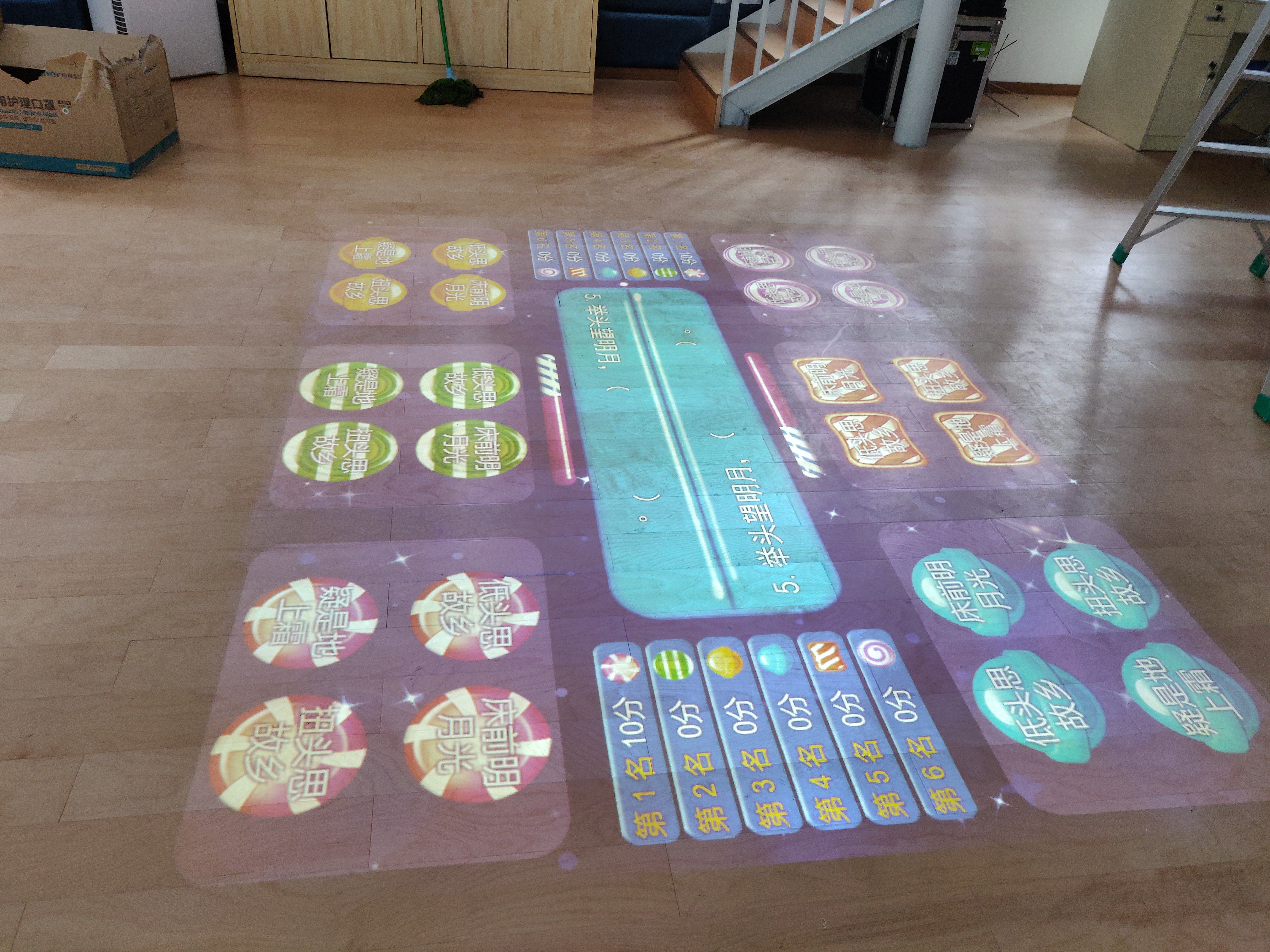產品詳細介紹創新教學模式通過游戲的方式學習,讓孩子在游戲中產生興趣,在快樂中學習。 打造教育新亮點試題與游戲合二為一,具有豐富的娛樂性和教育性,打造教育新亮點。 趣味性十足三維立體動畫呈現教學內容,讓書本“活”起來。 第一步:將語文、數學、英語、科學四門科目試題投影在地面。