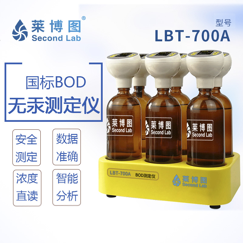 LBT-700A型 智能BOD測定儀根據國家標準《HJ505-2009》5日培養法設計而成,模擬自然界中有機物的生物降解過程,在密封培養瓶內,培養瓶上方空氣中的氧氣不斷補充樣品中被有機物分解消耗的溶解氧。通過除去有機物降解過程中產生的 CO2,使培養瓶中的空氣壓力產生變化,通過監測培養瓶中空氣壓力的變化,計算出樣品的生化需氧量 BOD值。