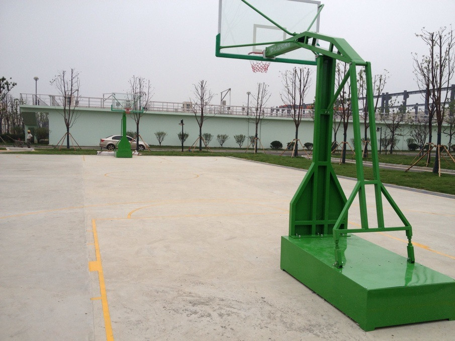 固定籃球架編輯 鎖定 固定籃球架分為真固定和假固定籃球架,真固定籃球架實際就是預埋籃球架,就是事先要在安裝籃球架的地面上挖坑,然后把籃球架配套的預埋件放下去,用準備好的混凝土澆筑,等干燥了以后再把籃球架的架子及籃球板和籃球框部分安裝好。這種預埋式籃球架安裝好了以后真的就動不了了,即使以后想要拆除的話,也只能把地面以上的部分帶走,底下的就得用挖掘機械把底下的部分擴大范圍全部掏出來才行。這種籃球架常見的有這么幾種樣式,詳見圖冊。