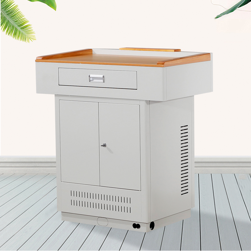 產品詳細介紹1. 外形尺寸:總體尺寸900*600*1000mm; 2. 上體部分:長度900mm,寬度600mm,高度230mm; 3. 下體部分:長度650mm,寬度520mm,高度760mm; 4. 底座部分:長度610mm,寬度480mm,高度60mm。 2.講臺桌面采用平面設計,可以放置不同型號筆記本電腦,桌面四周半包圍結構,有效防止物品滑落; 3.講臺前面設置隱藏式抽拉儲物盒(長*寬*高:545*260*65mm),可放置筆記本電腦、鍵盤鼠標、板擦、粉筆等教學用具; 4.講臺扶手,背板采用高檔橡木制成,表面噴高檔防滑漆,使用起來光滑度高,桌面顏色為木紋色,使整個講臺看起來美觀大方; 5.整體沖壓成型,整體結構緊湊,空間設計合理; 6.講臺下柜前后門均可打開,前門為對開門,方便放設備,后門為抽拉門,節省空間,整個下柜可作為儲物柜使用; 7.全部的加工件均采用模具成型,激光切加工而成、配合優良的焊接工藝,保障尺寸精度及各部件一致性,保證安裝的方便快捷。 8,整個講臺采用上下分體,拼裝組成,大大的減少了運輸成本。 9,產品通過通過國家ISO9001:2000國際質量管理體系認證、環境管理體系認證、職業健康安全管理體系認證,省級以上質檢報告。 |
