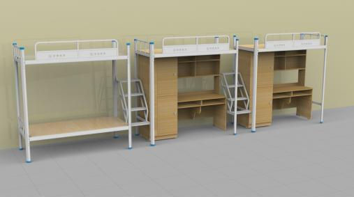 產品詳細介紹一、 床規格尺寸: 1、單面尺寸:6640*900*2085mm。 二、鐵件部分說明: 1、床立柱:61*61mm型管(六方型),材質Q195,立柱上下端加裝工程塑料防護套,保證架體與地 面接觸無聲,防止學生擦掛。 2、床橫梁:采用 32*72*1.2mm型管(P 型),材質Q195,增加承受能力,整體牢固美觀。 3、護欄:采用 25*25*1.2mm 方型管鑲 1.0mm 油壓成型鋼板; 4、床板梁:采用 25*25*1.2mm 方型管,6 根/位; 1 八人間 (四人 位梯步 式)連 體公寓床 5、步梯:采用 25*25*1.2mm 方型管,材質Q235 ;步梯踏板用 1.8mm 鋼板一次性沖壓成型, 步 梯與床立柱連接; 6、床板:采用 12mm 厚 E1 級環保多層板; 7、連接方式:采用 195*25*2mm“H”型卡扣式連接(無螺絲連接,整體全隱裝); 8、表面處理:鋼件焊接采用二氧化碳保護焊,金屬表面經過打磨、脫脂、酸洗、水洗、中和、 表 調、磷化、烘干等工序,再采用杜邦塑粉靜電噴塑處理、高溫固化成型。 三、木制部分說明: 1、衣柜:分上下兩層,衣柜上層內帶不銹鋼掛衣桿(直徑 19mm),基材采用 18mm 厚的 E1 級環保板制作;五金件:均采用優質五金配件;柜門鎖:采用明鎖暗掛,底部安裝 9mm 高的靜 音防潮腳墊; 2、學習桌:基材采用 18mm 厚 E1 級環保板,封邊:截面處采用 1.2mm 厚優質封邊條,桌面: 采用 25mm 厚 E1 級環保板,底部安裝 9mm 高的靜音防潮腳墊。 四、床的布局 1、床位長度采用錯開式布局,上下鋪床位長度 2 米,單上鋪長度 1.92 米,適用于房間尺寸有 限的情況下滿足不同身高的學生需求。 |