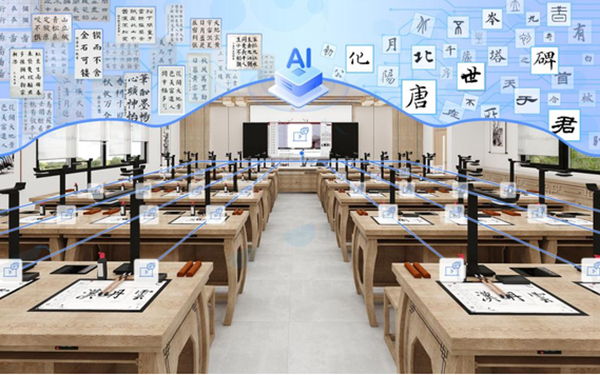 漢丹云智慧書法教室實現了書法教學場景的全過程數字化,借助自主研發的各類軟硬件系統,從例字教學到作業電子化一鍵歸檔,實現書法課堂教學評練測五大環節的數字化場景支撐,解決學校書法教師師資不足問題。