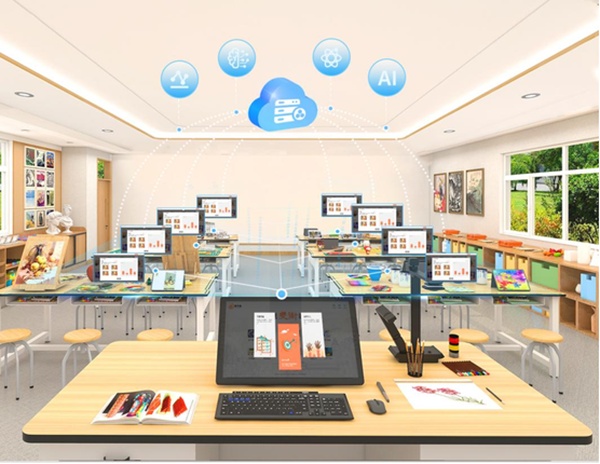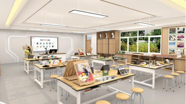 漢丹云智慧美術教室基于智慧課堂模型研發,通過美術教學軟硬件設備和繪畫工具材料的結合使用,覆蓋多種美術教學場景的專用功能教室。通過人工智能、大數據和云平臺等技術應用,為美術學科打造數字化、智能化和網絡化的專用功能教室,解決傳統美術課堂教學結構單一、師生互動困難、教學目標難以實現等缺陷,實現美術教育信息化,推動美術教育高質量的發展。智慧美術教室可用于美術課程授課、數字寫生、作品臨摹、名畫賞析、探究式項目學習、網絡化美術資源檢索共享和電腦數字繪畫等課程。