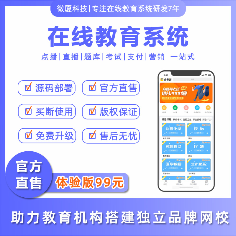 微廈在線學(xué)習(xí)考試系統(tǒng)|點(diǎn)播+直播+題庫+考試