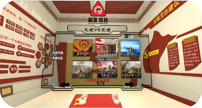 3、有效解決黨建館成本高、占地面積大等問題 傳統黨建館、黨群活動中心占地面積大、展示內容少、成本高。利用VR\AR黨建產品將部分成本高的傳統設備虛擬化,將黨建展廳多余、浪費空間轉化為VR虛擬黨建展廳,在虛擬展廳中可任意放入傳統設備,如大屏、黨建展示墻等,體驗者在虛擬展廳中也可像真實展廳一樣行走、漫游,虛擬展廳中的大屏、黨建展示墻也可像真實的設備一樣具備完善的功能。徹底解決黨建館成本高、占地面積大等問題。 |
