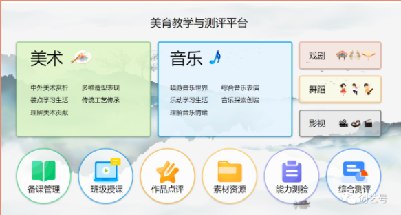 創(chuàng)藝號(hào)三大課程體系輔助以整體智慧美育教學(xué)平臺(tái),從教師的日常教學(xué)所需出發(fā),為教師便捷高效開(kāi)展課程、采集學(xué)生作品、多維多元評(píng)價(jià)提供技術(shù)保障,致力于服務(wù)美育進(jìn)中考工作的落實(shí)與推進(jìn)。