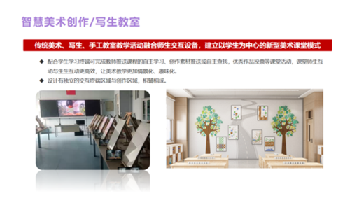 公司研發(fā)的智慧美育裝備產(chǎn)品結(jié)合國家政策與各地美育教學(xué)實(shí)地應(yīng)用,以藝術(shù)新課標(biāo)下美育素養(yǎng)評(píng)價(jià)為核心,貫穿軟件、硬件、課程、美育環(huán)境建設(shè)、服務(wù)于一體的一站式美育建設(shè)解決方案。為區(qū)域及學(xué)校提供藝術(shù)類功能教室、美育課程、美育評(píng)價(jià)、美育教學(xué)監(jiān)測(cè)、美育大數(shù)據(jù)、美育作品展演等相關(guān)全應(yīng)用場(chǎng)景解決方案。