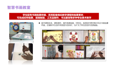 創(chuàng)藝號(hào)智慧書法教室是把傳統(tǒng)書寫工具和信息化設(shè)備進(jìn)行整合,在不改變用戶使用習(xí)慣的情況下,達(dá)到滿足不同地區(qū)不同用戶的教學(xué)需求,填補(bǔ)書法教師師資力量薄弱的空缺,幫助學(xué)校和師生開展互聯(lián)網(wǎng)時(shí)代的教學(xué)。隨著國家對(duì)傳統(tǒng)文化教育的重視,課堂教學(xué)中提高漢字書寫能力的教學(xué)要求逐漸清晰,而針對(duì)《中小學(xué)書法教育指導(dǎo)綱要》教學(xué)所需的師資力量還遠(yuǎn)不能滿足教學(xué)需求。傳統(tǒng)的書法課堂教學(xué)形式過于呆板、學(xué)習(xí)方法相對(duì)落后、學(xué)習(xí)效率低下,無法適應(yīng)互聯(lián)網(wǎng)時(shí)代的廣泛應(yīng)用。中小學(xué)智慧書法校園即可部署在常態(tài)化教室中滿足日常漢字書寫教學(xué)練的需要,又可形成做特色化硬筆、毛筆書法功能教室。教學(xué)系統(tǒng)中的配備成長型課程體系、各類音視頻資源、課程課件、漢字文化知識(shí)以及書法歷代碑帖確保教師教學(xué)標(biāo)準(zhǔn)有質(zhì)量,融合的學(xué)生端智能書寫工具,配合書寫智能評(píng)價(jià)算法和各類教學(xué)方法,確保學(xué)生書寫規(guī)范又高效。將為眾多老師書法課堂有質(zhì)量高標(biāo)準(zhǔn)的滿足書法教學(xué)。