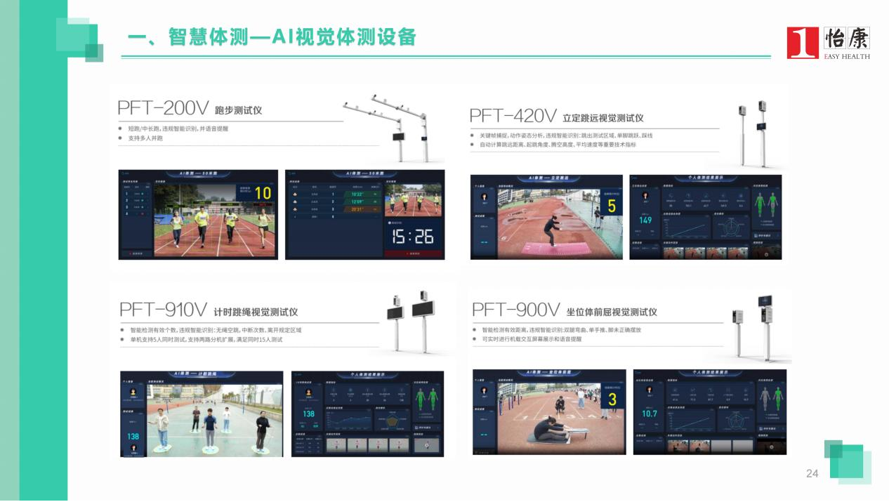 怡康AI智慧體測基于圖像識別技術,使傳統體育中定性信息定量化,改變以“經驗“為基的價值判斷,打造“教學練測評管“一體化的智慧體育校園。秉承“教師好用、學生喜用、管理易用”的場景設計理念,專助于構建沉浸式A1無感交互體育運動場景。致力于實現“教師教學、學生學練、體測競賽、綜合管理、AI陽光跑”等應用場景。