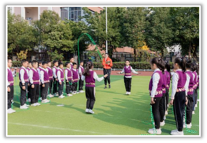老師不再需要人工計數,可以全身心投入到觀察學生的動作規范、體能表現以及團隊合作精神中。小組賽一觸即發,學生們分組對抗,跳繩的數字變化成小火箭嗖嗖上漲,競爭氛圍熱烈又不失友好。每當有人突破個人記錄,全場都會爆發出熱烈的掌聲和鼓勵聲,這樣的場景,簡直是活力與正能量的完美融合!