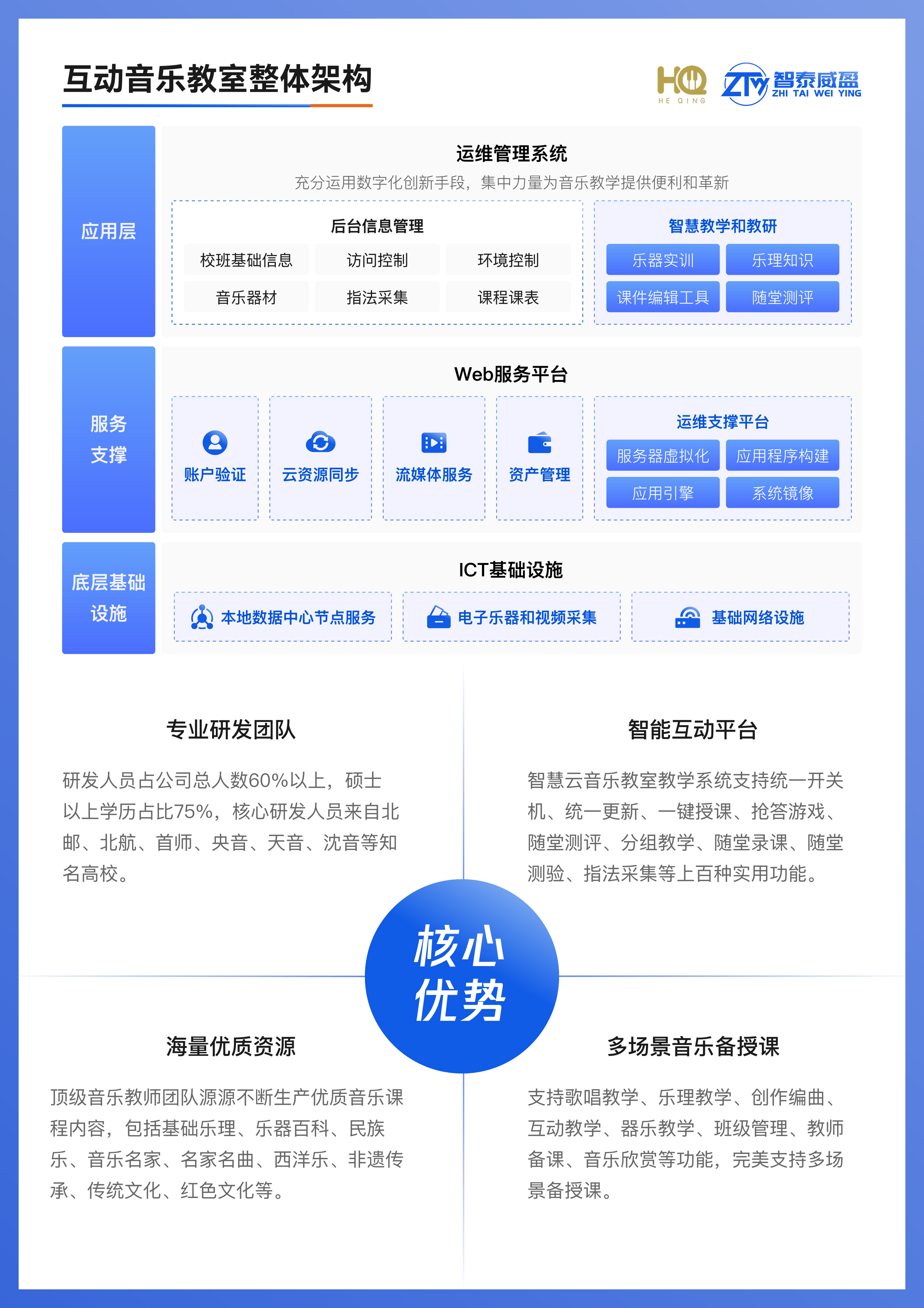 智慧音樂教室一站式服務提供商,可提供針對幼兒園、K12、職業教育等相關的音樂器材室、MIDI教室、錄音棚、數碼鋼琴實訓室、音樂創客教室及舞蹈教室、少隊部、各類民樂教室和管樂教室等