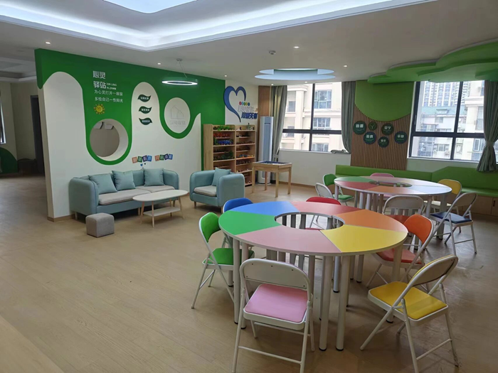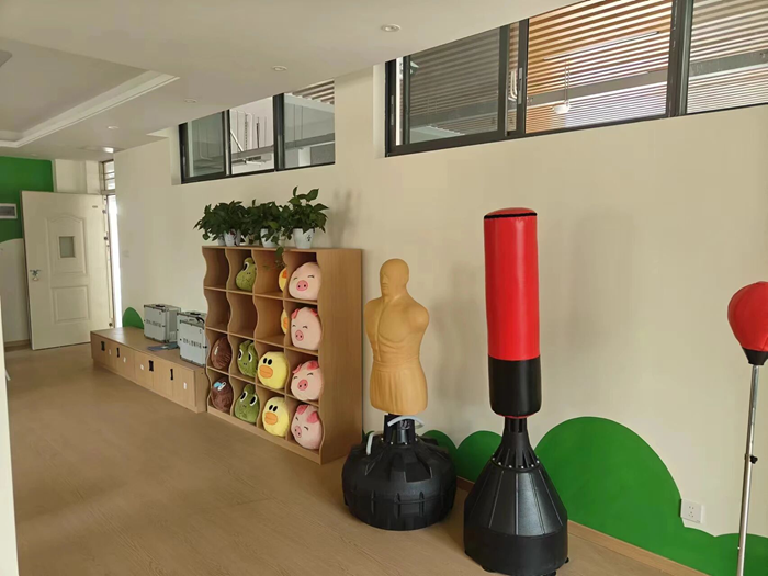 采用柔和的色彩與燈光,劃分為個體咨詢區、沙盤游戲區、情緒宣泄區及團體活動區。專業的設計有效消除了學生的緊張感,讓心理輔導在舒適自然的環境中悄然進行。