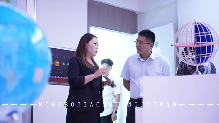 在參觀過程中,集團負責人向張主任詳細介紹了齊魯宏博在教育裝備領域的探索與實踐,分享了我們在技術研發、產品創新、市場布局等方面的最新成果。
