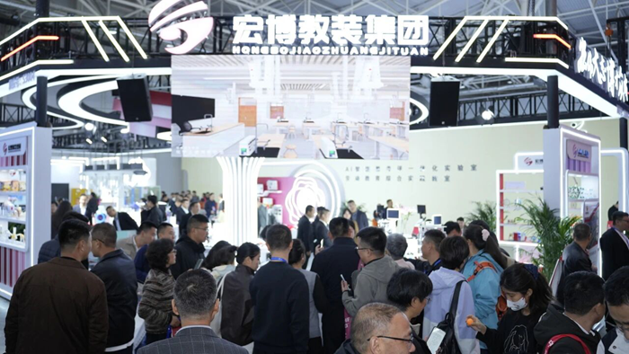 第86屆中國教育裝備展示會于今日在青島隆重開幕。作為教育裝備行業(yè)的“航母級”盛會,本次展會匯聚了眾多知名企業(yè),共同描繪未來教育的宏偉藍圖。宏博教裝集團盛大參展,在S3館004展位華麗亮相,以其前瞻性的教育科技產(chǎn)品與解決方案,成為全場矚目的焦點。