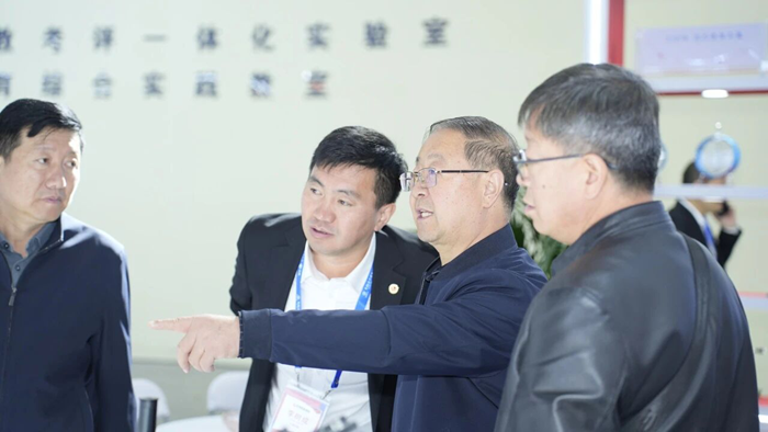 展會期間,中國教育裝備行業(yè)協(xié)會領(lǐng)導及多位省市教育考察團親臨宏博展位指導。領(lǐng)導們詳細參觀了產(chǎn)品展示區(qū),親自體驗了“新型吊裝實驗室”、“AI賦能精準教學系統(tǒng)”等核心解決方案。領(lǐng)導們對宏博教裝的前沿技術(shù)研發(fā)能力和扎實的產(chǎn)品應(yīng)用落地給予了高度評價,并鼓勵宏博繼續(xù)深耕,打造更多引領(lǐng)行業(yè)的標桿性產(chǎn)品。