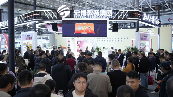 宏博教裝集團與行業(yè)同仁及各界嘉賓共同見證了這一輝煌時刻。集團董事長在開幕后表示:“第86屆教裝展是行業(yè)發(fā)展的風向標,更是我們與用戶、伙伴深度交流的寶貴平臺。宏博教裝集團此次攜新研發(fā)成果而來,旨在與全國教育工作者一道,探索科技與教育深度融合的無限可能,為推動中國教育現(xiàn)代化貢獻‘宏博力量’。”