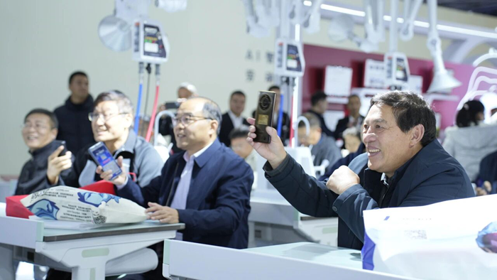 “搖一搖贏好禮”:現(xiàn)場觀眾只需打開手機微信掃碼,進入宏博教裝專屬活動頁面,即可參與互動。隨著主持人一聲令下,全場齊搖手機的畫面蔚為壯觀,大屏幕上實時滾動的排名更是引發(fā)陣陣歡呼。最快速度的參與者成功將大獎收入囊中。