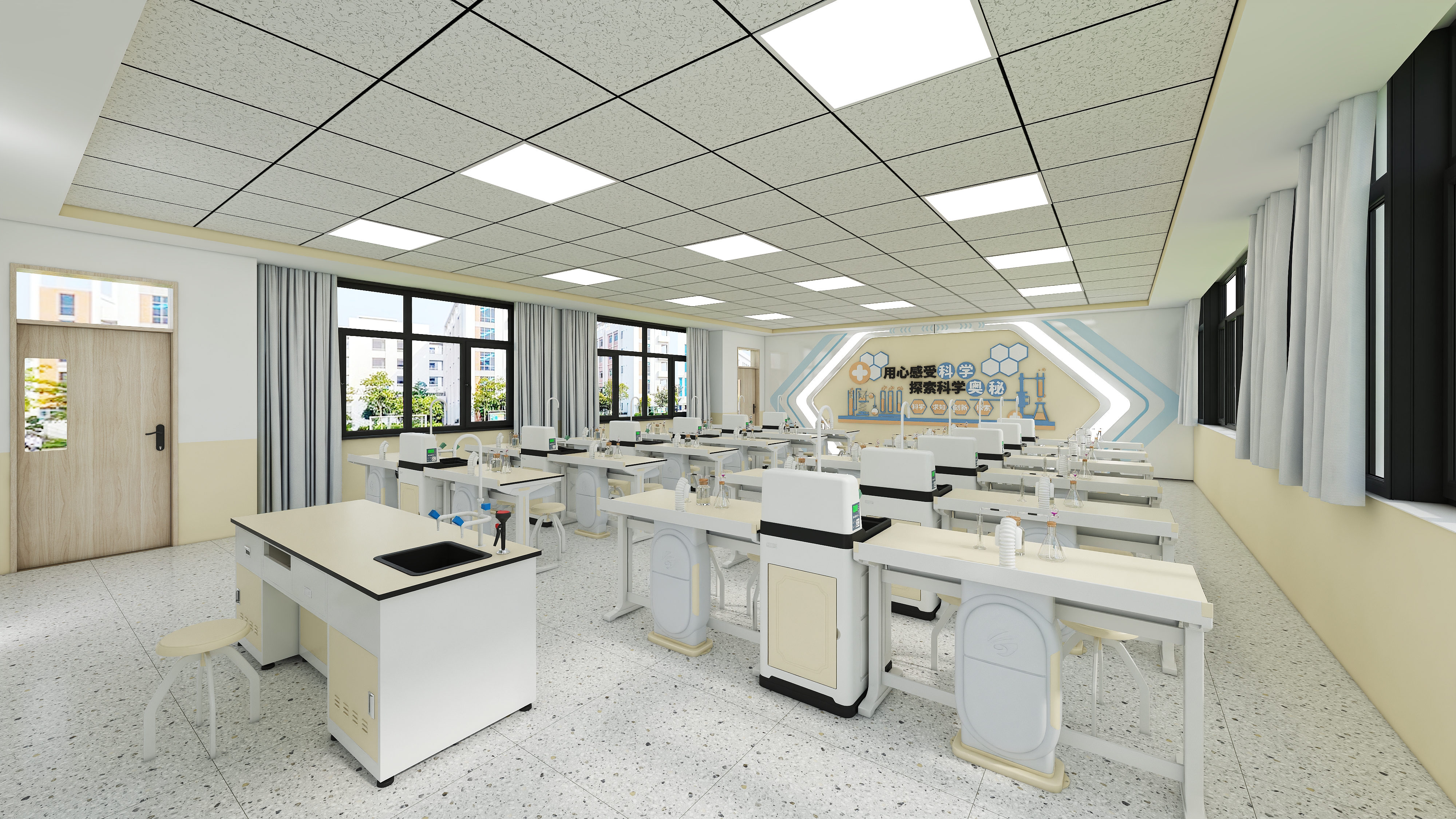 新型化學下通風實驗室根據國家中小學實驗室配備要求設計而成,采用新型鋁塑結構,整體結構三段式設計更易組裝,桌下鏤空設計。采用隱蔽式吸風罩下排風方式,不用的時候隱蔽于卓體內,美觀大方。