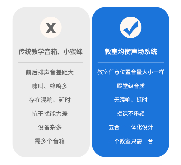 教室任意位置聲音大小一樣,達到前后排聲壓級差值在士2dB以內,優于美國《ANSI.ASA.S12.60.Part.1》 士2.5dB 標準要求。