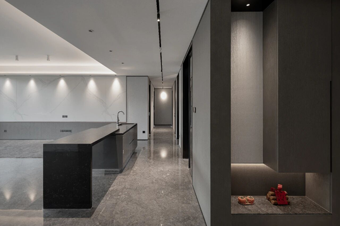 在圓明天頌高端住宅項目中,三雄極光旗下鉑刻照明團隊將“光健康”理念貫穿設計全程。公共區域采用約3000K的暖色溫以營造居家溫馨感,并應用微棱鏡擴散板等防眩光技術,致力于打造無眩光干擾的舒適光環境。