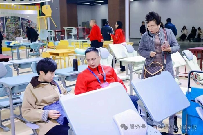 產(chǎn)品區(qū)中,多款課桌椅充滿設計感,并以人體工學設計保障學習舒適度與安全性;午休課桌椅則憑借硬核實力脫穎而出 —— 作為江蘇省午休課桌椅地方標準起草單位,其產(chǎn)品嚴格符合國標,江蘇省標雙重標準,更以靈活折疊設計實現(xiàn) “課用 - 午休” 轉(zhuǎn)換,節(jié)省空間適配校園需求。現(xiàn)場教育工作者駐足體驗,對產(chǎn)品的專業(yè)標準與實用價值高度認可。