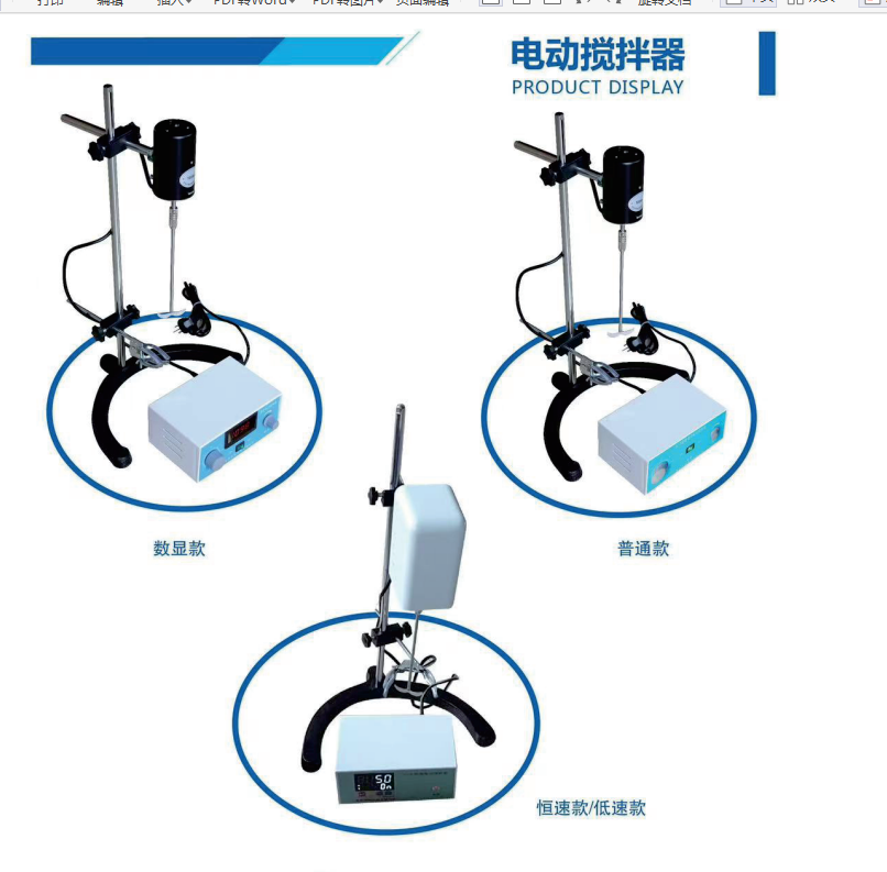 電動(dòng)攪拌器技術(shù)參數(shù) 型號(hào) 電機(jī)功率 轉(zhuǎn)速范圍 轉(zhuǎn)速顯示 調(diào)速方式 定時(shí)范圍 JJ-1 60W 0-2800轉(zhuǎn) 無(wú) 旋鈕調(diào)速 0-120分鐘 100W 120W 200W 300W JJ-1A 60W 200-2800 普通數(shù)顯 旋鈕調(diào)速 0-120分鐘 100W 120W 200W 300W JJ-1B 60W 200-2800 恒速數(shù)顯 數(shù)控調(diào)速 0-999分鐘 100W 120W 200W 300W JJ-1B 低速攪拌 50-400 恒速數(shù)顯 數(shù)控調(diào)速 0-999分鐘 |