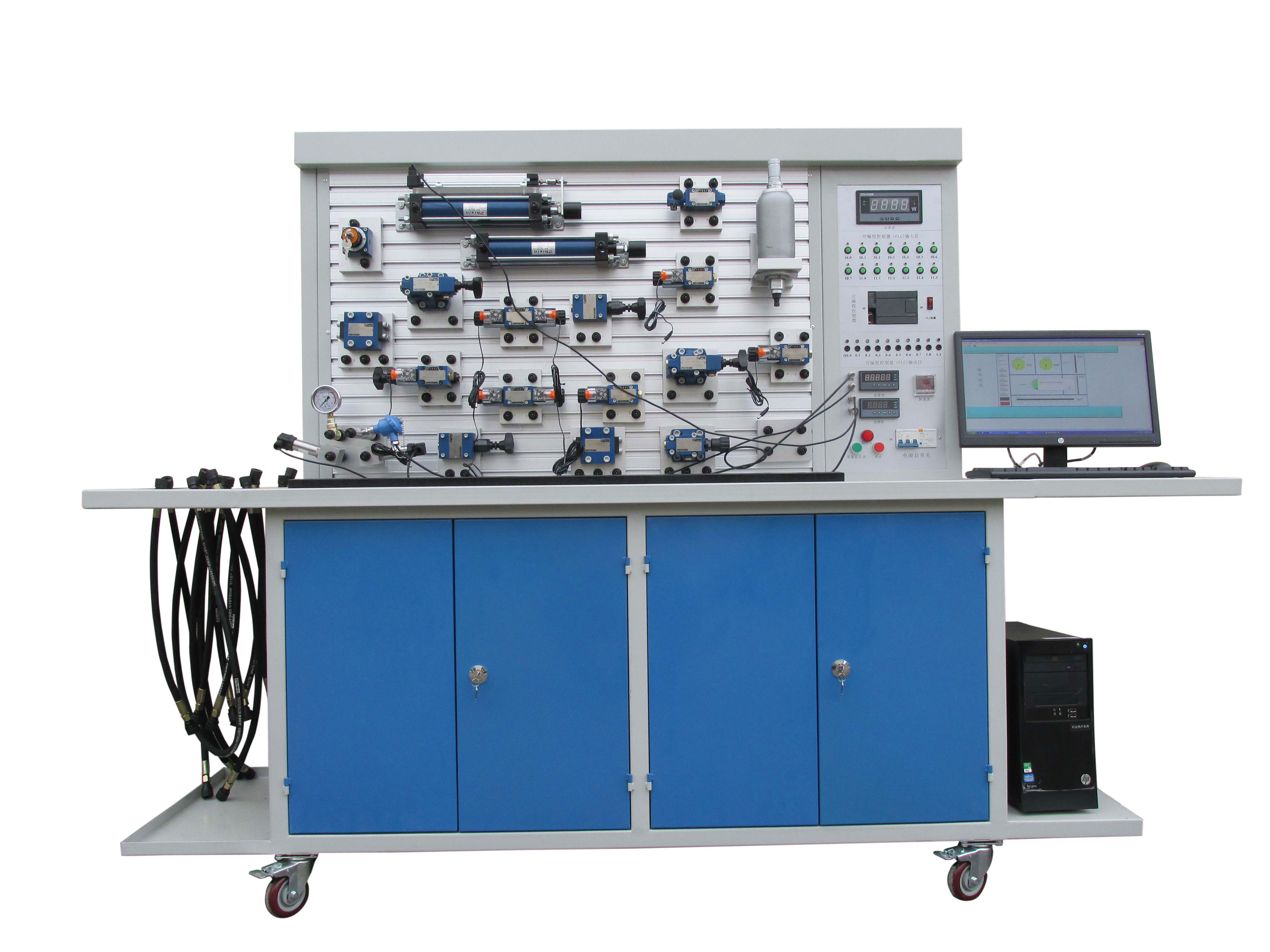 產(chǎn)品詳細介紹技術(shù)參數(shù) 一、數(shù)據(jù)采集單元 1、采用國內(nèi)知名測試分析系統(tǒng),通過對流量、壓力、功率、轉(zhuǎn)速、時間、溫度測量——機算機人機畫面——計算機智能數(shù)據(jù)采集、分析、處理、自動生產(chǎn)報表、曲線等一系列自動化動作后,完成液壓實驗。 二、實訓(xùn)項目 1、常用液壓元件的性能測試: 1) 液壓泵性能測試(靜態(tài)、動態(tài)) 2) 溢流閥性能測試(靜態(tài)、動態(tài)) 3) 節(jié)流閥、調(diào)速閥性能測試 4) 減壓閥性能測試(靜態(tài)、動態(tài)) 5) 阻尼孔性能測試(選配) 2、液壓傳動基本回路實驗(方向控制回路、壓力控制回路、速度控制回路、順序動作回路等可達45種) 3、可編程序控制器(PLC)電氣控制實驗,機電液一體控制實驗形式。 4、配有液壓組態(tài)仿真軟件,可模擬液壓實驗回路的搭接。 該組態(tài)軟件可在計算機屏幕上形象的把液壓油的流動方向、各種液壓閥內(nèi)部閥芯的工作狀態(tài)、油缸的工作過程和泵的工作原理實時的顯示出來。 |