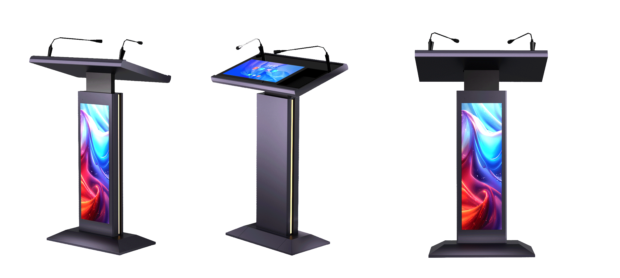 產(chǎn)品詳細介紹白板、批注、投屏、音視頻點播、文檔放映、辦公及影音娛樂、AI問答小助理、騰訊會議、信號源調(diào)度、軟中控、支持無線WiFì、藍牙、支持翻頁筆、自帶麥克風(fēng),可當(dāng)點歌機,可當(dāng)會議平板,專業(yè)講臺,具有平板功能。 1.多模式顯示輸出:支持 4KHDMI60Hz 輸出(對接拼接屏、投影儀等),2KHDMI輸入,可同步顯示、小屏控大屏;配備會標屏(560x1920 分辨率),支持LOGO、嘉賓信息加展示。2文檔與媒體播放:U盤即插即用,支持文檔(PPT 等)一鍵放映、翻頁、批注;支持視頻、圖片播放,可導(dǎo)入導(dǎo)出文 件。 3.題詞與輔助展示:主屏可作為題詞屏,支持歡迎詞功能(內(nèi)胃模板+背景音樂):支持節(jié)目單編輯,按需切換主背景人物介紹、宣傳片等內(nèi)容。 4.無線投屏:支持手機、平板、電腦無線投屏,4 畫面分屏,支持私密投文件/視頻/圖片,掃碼快捷投屏。白板與批注:支持多顏色、多粗細筆書寫,頁面縮放/移動/多開;任意頁面可批注,支持掃碼分享下載筆記。5.+二如一…,電腦上傳文件至講臺,實現(xiàn)快速數(shù)據(jù)互通 |