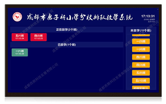 3、一屏多用,自動切換 排隊放學系統所用的顯示屏系統,平時可作為學校宣傳屏,放學時自動切換到排隊放學系統,學生全部離校后自動恢復播放宣傳內容。