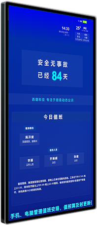 產品詳細介紹 還在為值班安排混亂、交接信息模糊發愁嗎?西朗科技智能值班屏,專為機關、企事業、醫院、學校等單位量身打造,一鍵解鎖高效值班新體驗!