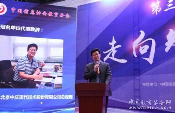 2018中國(北京)未來教育裝備展暨第三屆未來教育高峰論壇在北京國家會議中心隆重開幕。此次教育盛會由中國信息協會主辦,北京中慶現代技術股份有限公司獨家冠名。展會開幕式中,中慶總經理周少林先生作為企業代表登臺致辭:周總提到,人工智能和教育結合是未來教育一個重要的發展方向,課堂教學場景和大數據建設則是人工智能教育的兩大重要元素,人工智能需要走進課堂才能更好的服務教育。面向未來教育,中慶號召更多的企業能在人工智能方向上“擼起袖子加油干”,為教育的未來、為教育用戶奉獻更多的精彩。