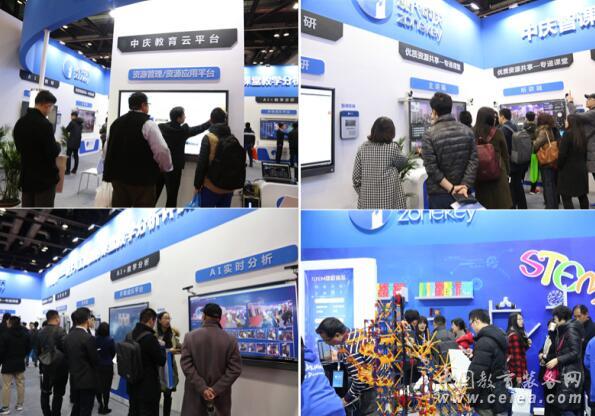 同期舉行的未來教育裝備展會吸引了來自全國各地的中小學教育用戶、經銷商以及超過200多家教育裝備企業約一萬多人前來參會。現代中慶作為獨家冠名企業攜人工智能+教育錄播的創新應用——中慶智課盛裝亮相,展現人工智能在教育中的應用成果,成為展會中人工智能+教育惹人注目的企業,中慶展位吸引了眾多參展嘉賓駐足詢問。
