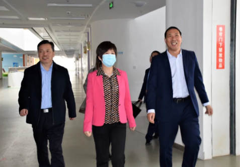 蘭州新區教育系統曾俊萍局長一行人與楊世臣校長親切交談。