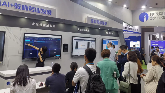 在現代中慶的展位里,AI教師專業(yè)發(fā)展展區(qū)一直人流不斷,觀展嘉賓們普遍被人工智能對課堂的數據化解析應用所吸引。現代中慶人工智能自動生成課堂數據分析報告,數據報告與課堂視頻相結合可以開展精準的課堂診斷與評價;教師也可以基于數據進行有針對性的自我反思。基于云平臺還可以開展大規(guī)模的網絡數據化教研活動。AI+互聯網極大拓展了名師課堂的研修模式創(chuàng)新。這一AI亮色成為展會中矚目的吸睛點。