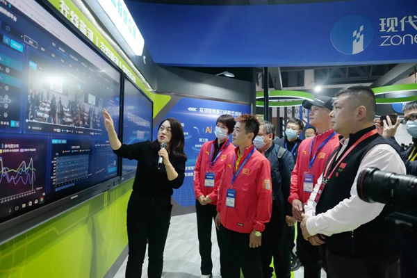 展會首日,現代中慶展位人氣火爆。教育部原黨組成員、原中央紀委駐部紀檢組組長田淑蘭等領導一行蒞臨中慶展位,北京中慶現代技術股份有限公司董事長宋東茂和總經理周少林為其講解,田淑蘭對中慶做專做深AI應用表示高度肯定。