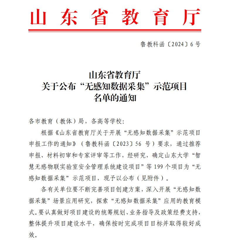本次“無感知數據采集”示范項目遴選,是由山東省教育廳組織,旨在通過遴選優秀的“無感知數據采集”教育數字化實踐解決方案,樹立可復制推廣、可規模應用的項目標桿,推動教育理念重塑、學習方式重構、業務流程再造,促進教育數字化轉型。
