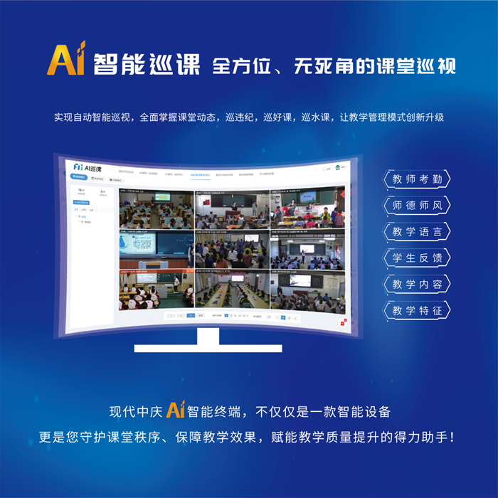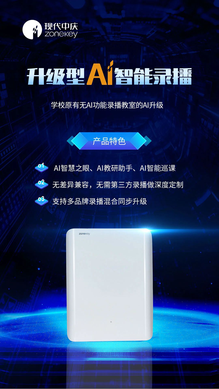 現(xiàn)代中慶AI智能錄播作為一臺教室終端,具備三大AI功能:
