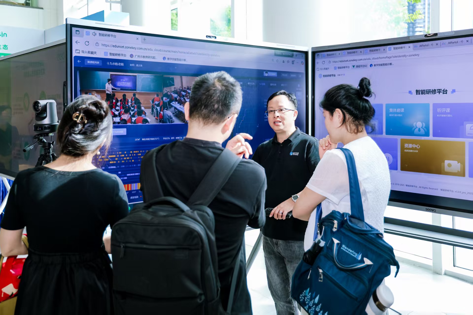 研討會期間,同時舉辦的“智能科技教育裝備展”,旨在為參會者提供一個直觀、沉浸、互動的AI教育場景體驗平臺。現(xiàn)代中慶展出了多個教育AI應(yīng)用方案。包括AI精準(zhǔn)教研,AI巡課與督導(dǎo),AI教學(xué)技能實訓(xùn)等,讓與會嘉賓沉浸式體驗了AI賦能下教師專業(yè)成長和教學(xué)質(zhì)量管理范式的數(shù)字化轉(zhuǎn)變。