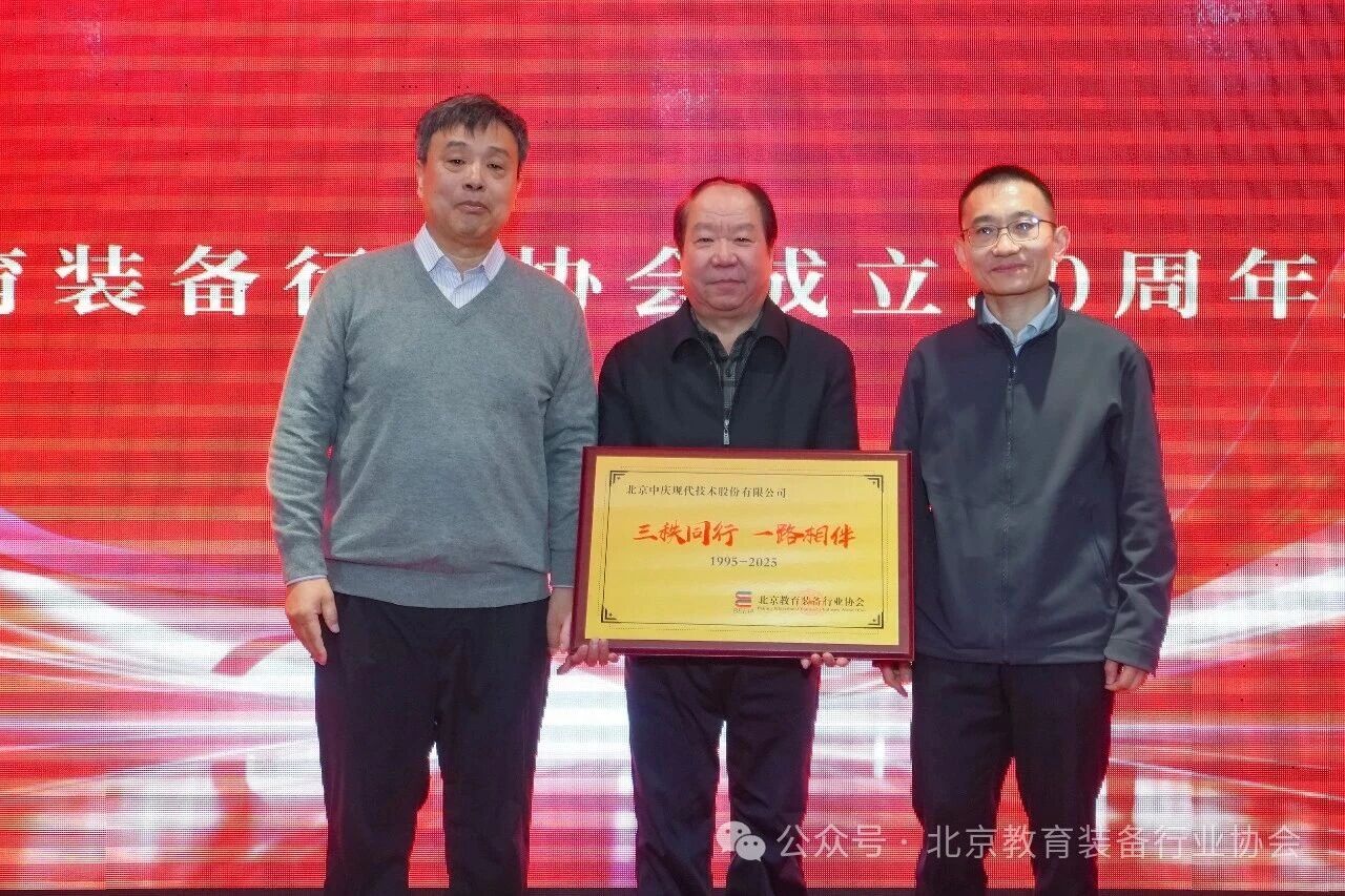 近日,在北京教育裝備行業協會成立三十周年座談會上,一段跨越三十年的產學研合作佳話迎來了高光時刻。協會特別向長期以來的重要合作伙伴與會員單位——北京中慶現代技術有限公司(以下簡稱“現代中慶”)頒發了題為“三秩同行 一路相伴”的榮譽紀念牌,以此表彰現代中慶自1995年協會成立之初便加入,三十年來與中國教育風雨同舟、共同成長的深厚情誼。