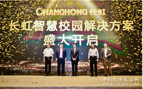 長虹公司副總經理、智慧業務BG董事長、四川長虹教育科技有限公司董事長郭德軒表示,長虹以云計算、大數據、物聯網、Ai人工智能等前沿技術的創新應用來打造端云一體的教育核心解決方案,率先構建完成了智慧管理、智慧教學、智慧環境、智慧服務、中高考教學改革等涵蓋校園考評管全方位一體的新型智慧校園產品方案。