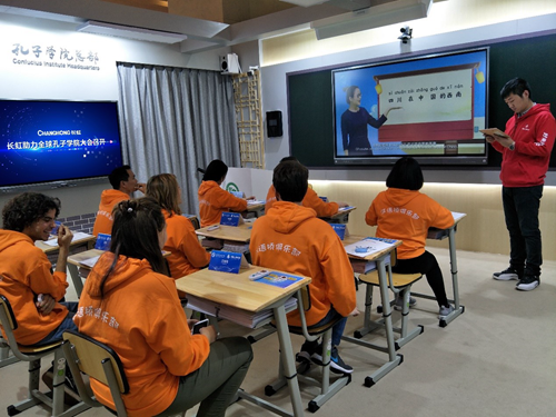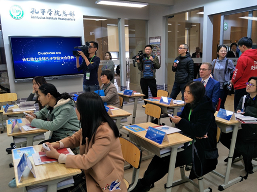 2月4日,第十三屆全球孔子學(xué)院大會(huì)在成都開幕,來自150多個(gè)國家和地區(qū)的大學(xué)校長、孔子學(xué)院代表近1500人參加大會(huì),共話漢語海外教學(xué)和文化交流。長虹助力全球孔子學(xué)院大會(huì),為第十三屆全球孔子學(xué)院大會(huì)送了一份別樣的禮物—孔子學(xué)院全球首間智慧教室,受到了現(xiàn)場中外大學(xué)校長、孔子學(xué)院代表的一致好評(píng)。