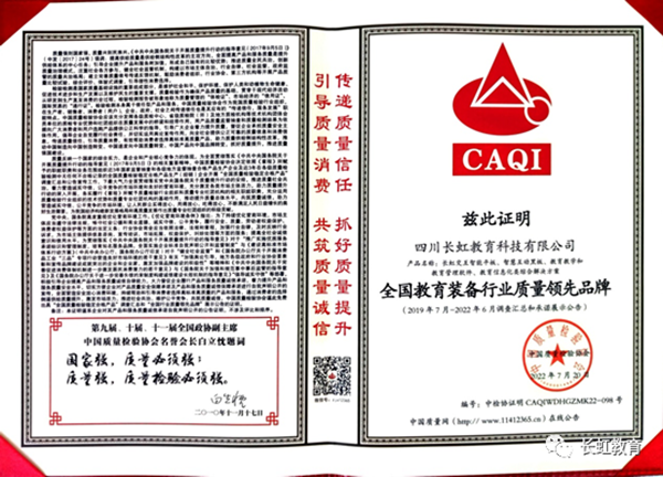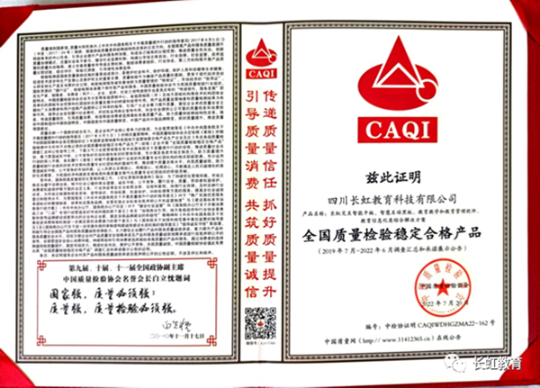 我國“質量月”活動始于1978年,至今已有40余年的歷史。一直旨在提高全民質量意識,營造人人關心質量、重視質量、追求質量、創造質量、享受質量的良好社會氛圍,提升國家質量競爭力,推進建設質量強國。全國“質量月”是國家權威質檢機構針對產品質量的一次全國性大考,在質量把控領域有著重要的參考和示范意義。長虹教育科技此次一舉斬獲三項質量殊榮毫無疑問是憑借穩定可靠的產品質量取勝。