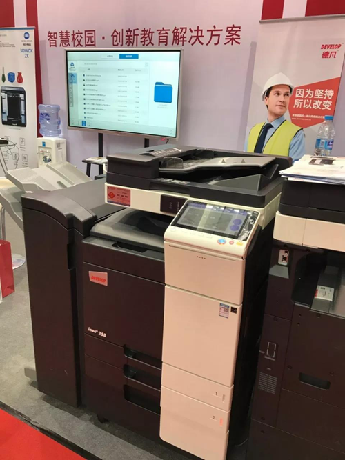 本次展會吸引了華為、索尼、網易教育等國內外知名品牌參與其中,作為源自德國的一體化商務解決方案專家,DEVELOP™德凡™也攜旗下ineo+258彩色多功能復合機、ineo 368e黑白多功能復合機以及德凡智慧校園文印管理解決方案精彩亮相本次展會。