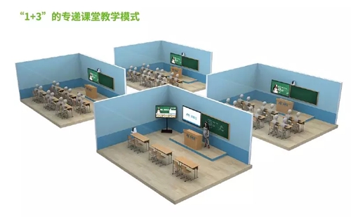 在大別山深處,安徽省政府確定的試點模式“1+3專遞課堂”正在進行。即一個沒有學生的主講課室,帶三個聽課教室。主講端選擇城區的名校老師代課,并專門針對遠程模式和基礎學生設計課程內容(區別于此前的遠程教學直播);聽課端三個課室學生人數加起來亦基本等于一個正常課室學生人數,可以形成合理的教師對學生學習進度的掌控。