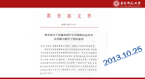 2004年有相關的教師教育技術能力與建設的規定,到了2013年又有新的有關于新技術應用能力相關的政策(《教育部關于實施全國中小學教師信息技術應用能力提升工程的意見》),我們圍繞這個政策,對教師信息技術應用能力開展了標準的研制、課程的設計。