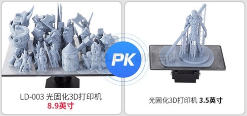 本次發布的兩款LCD光固化3D打印機中,LD-002僅是細節上的大規模改進,更為精密、高效和穩定,并且保持了超高的性價比。而LD-003則是全新一代LCD旗艦,配置了直線導軌模組、平行UV光源、提拉緩沖等創新性模塊,大幅提升了設備的性能精度和可靠性。此外最為關鍵的,LD-003采用了一塊8.9寸的投影屏,在保障精度的前提下,提供了市場上同類產品中少見的大成型尺寸。