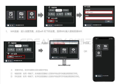 創想三維LD系列光固化3D打印機的另一大優勢在于自主軟件系統,長期保持更新并且設備支持一鍵升級。在固件系統上,新版對局域網聯機功能進行了優化: